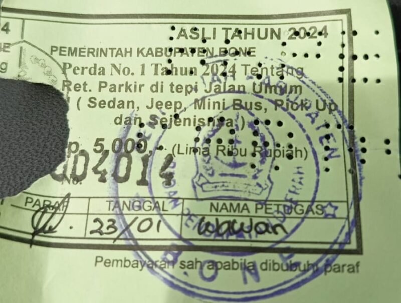 BONEKU.COM–Pantastis. Begitulah tanggapan seorang warga usai belanja disebuah pertokoan di kabupaten Bone Sulawesi Selatan. Pasalnya, retribusi parkir mobil yang selama ini di bayar Rp 2000,- kini menjadi Rp 5000.