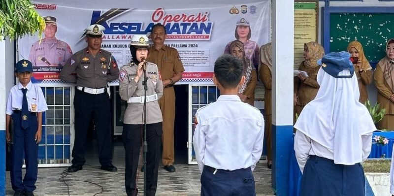 BONE,BONEKU.COM,– Satuan lalu Lintas Polres Bone menggelar sosialisasi di hari pertama pelaksanaan operasi Keselamatan Pallawa tahun 2024, Sosialisasi tersebut digelar di SMPN 6 Watampone, Senin, 4/3/2024