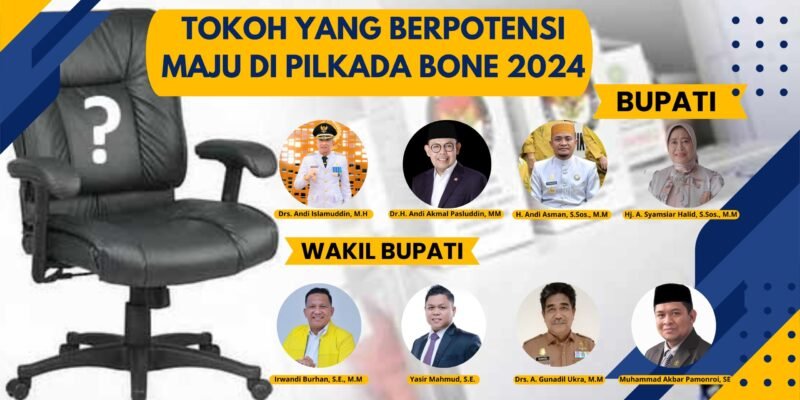 Dari obrolan warung kopi, sejumlah nama disebut-sebut berpotensi di Pilkada Bone, nama-nama tersebut diketahui, Andi Islamuddin yang saat ini menjabat sebagai Pj.Bupati Bone, sebelumnya Andi Islamuddin juga pernah menjabat sebagai kepala BKPSDM, Kepala Inspektorat Daerah dan Sekda sebelum menjabat Pj. Bupati.