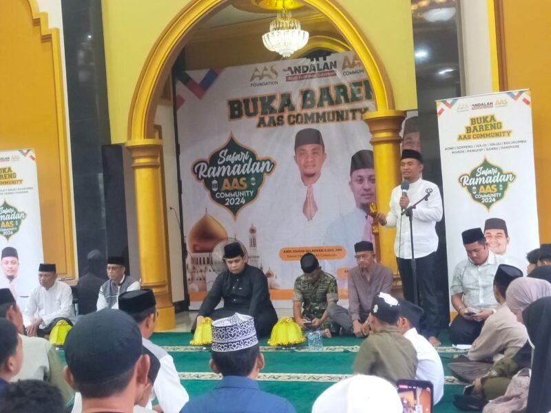 BONE,BONEKU.COM-AAS Community menggelar buka bareng di Masjid Umrah Jalan Pramuka Kelurahan Ta Kecamatan Tanete Riattang Kota Watampone, Selasa 2 April 2024.