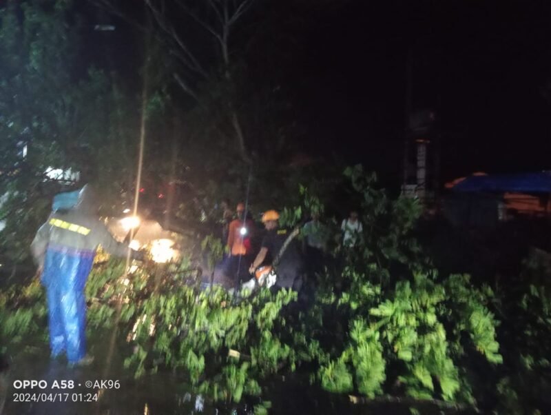 Tim Reaksi Cepat BPBD dan Satgas Satpol PP yang mendapat laporan dari warga setempat adanya pohon tumbang jalan yang menutupi jalan langsung berangkat ke TKP untuk melakukan evakuasi.