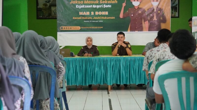 Kejaksaan Negeri Bone telah menyasar sekolah-sekolah di Kabupaten Bone untuk menyampaikan hal tersebut, kali ini pihak Kejari Bone melakukan sosialisasi di MAN 2 Watampone.