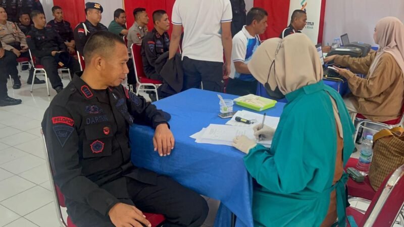 BONE,BONEKU.COM- Personel Batalyon C Pelopor Satbrimob Polda Sulsel mengikuti kegiatan Pemeriksaan Kesehatan Berkala ( Rikkesla) yang digelar oleh Biddokkes Polda Sulsel, Jum’at (31/05/24).