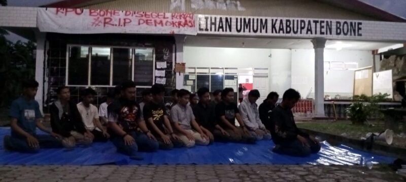 Lebih jauh Muh Ali mengatakan bahwa para pengunjuk rasa akan mendirikan tenda di halaman Kantor KPU dan berencana akan menginap ketika apa yang menjadi tuntutan mereka tak terpenuhi, Hingga pukul 18:10 menit para pengunjuk rasa masih terlihat di depan Kantor KPU bahkan terlihat para pendemo menggelar Sholat berjamaah.