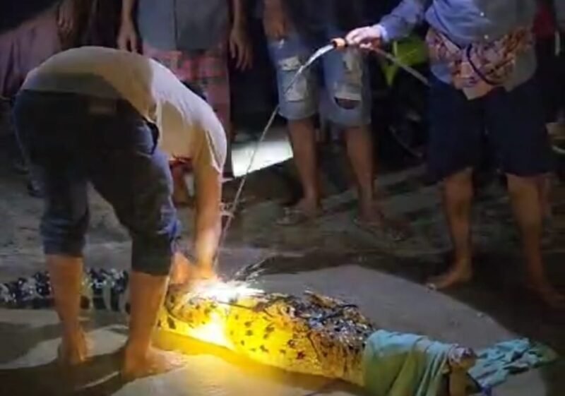 “Buaya itu ditangkap warga ramai-ramai tadi malam sekitar pukul 19:00 dan menjadi tontonan,” Ungkap Yayank Kamis 13/6/2024