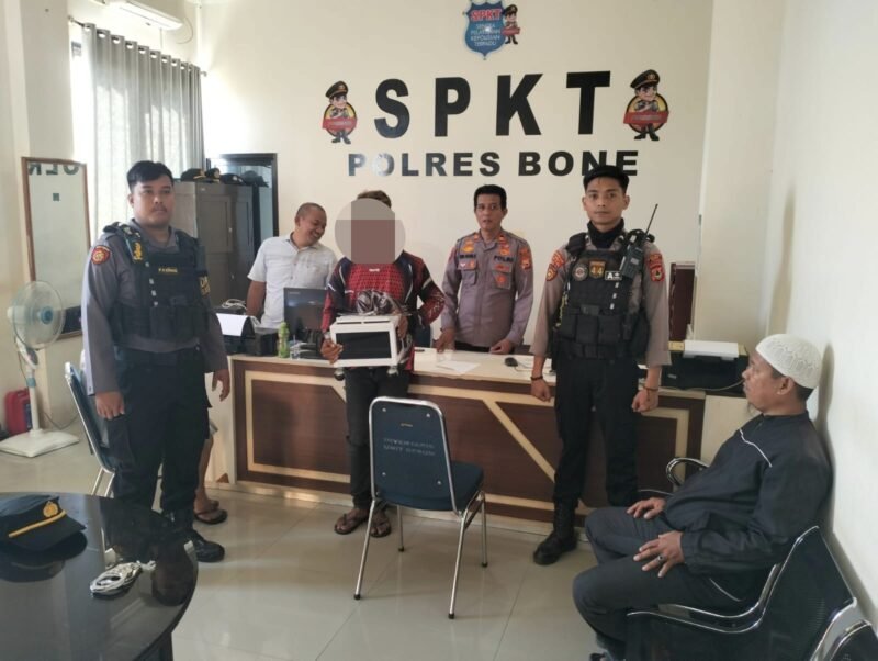 BONE,BONEKU.COM,– Personel Polres Bone dari unit Sat Samapta Polres Bone berhasil mengamankan seorang terduga pelaku pencurian kotak amal di Masjid Songkok Recca Watampone, Jumat pagi 23/8/2024.
