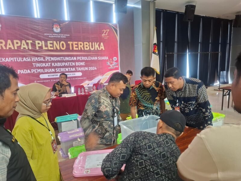 BONE,BONEKU.COM,– Badan Pengawas Pemilihan Umum Kabupaten Bone telah melakukan pengawasan ketat selama 3 hari pada Rapat Pleno Terbuka Rekapitulasi Hasil Penghitungan Perolehan Suara Tingkat Kabupaten Bone yang dilaksanakan oleh KPU Bone di Ruang Pertemuan Hotel Novena Bone.