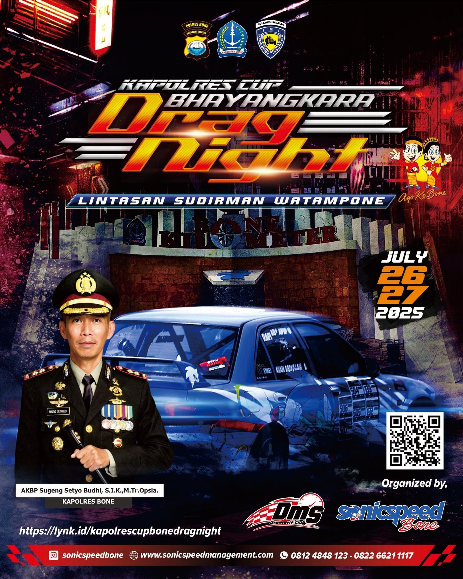 BONE,BONEKU.COM,– Dalam rangka memeriahkan Hari Ulang Tahun (HUT) ke-79 Bhayangkara, Polres Bone akan menggelar ajang bergengsi Kapolres Cup Bhayangkara Drag Night. Event balap malam ini dijadwalkan berlangsung pada 26–27 Juli 2025 di lintasan Jalan Jenderal Sudirman, Watampone.
