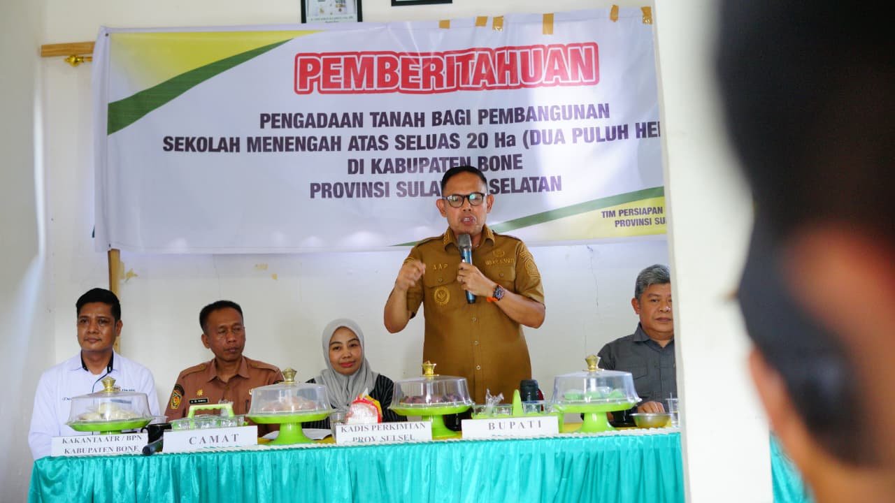 “Ini bukan hanya soal pembangunan sekolah, tetapi juga tentang bagaimana kita membuka peluang baru bagi masyarakat sekitar,” tambahnya, sembari menjamin komitmen Pemkab Bone untuk memastikan seluruh proses pengadaan tanah dilakukan secara transparan, adil, dan sesuai peraturan perundang-undangan.