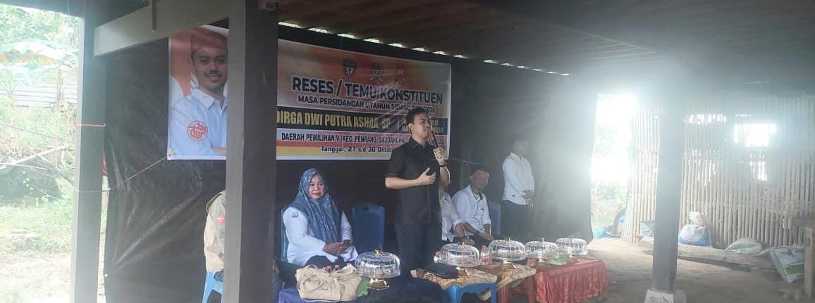 WAJO.BONEKU.COM,– Di tengah hamparan sawah yang mulai menguning, anggota DPRD Kabupaten Wajo Dirga Dwi Putra Ashar kembali hadir di tengah masyarakat yang menjadi sumber inspirasinya. Legislator muda dari Partai Keadilan Sejahtera (PKS) ini melaksanakan kegiatan reses di Desa Benteng, Kecamatan Penrang, Rabu (29/10/2025), untuk menyerap langsung aspirasi warga.