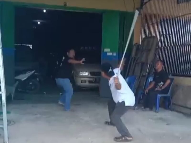 Peristiwa itu terjadi di depan sebuah ruko di Jalan MT Haryono, Kelurahan Macanang, Kabupaten Bone, pada Senin (3/11/2025). Dalam rekaman berdurasi sekitar 45 detik, terlihat dua pria terlibat duel sengit menggunakan senjata tajam dan besi panjang.