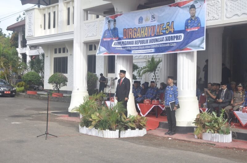 BONE.BONEKU.COM,– Pemerintah Kabupaten Bone menggelar upacara peringatan Hari Ulang Tahun (HUT) ke-54 Korps Pegawai Republik Indonesia (Korpri) Tahun 2025 di Halaman Kantor Bupati Bone, Jl. Jend. Ahmad Yani Watampone, Senin (1/12/2025).