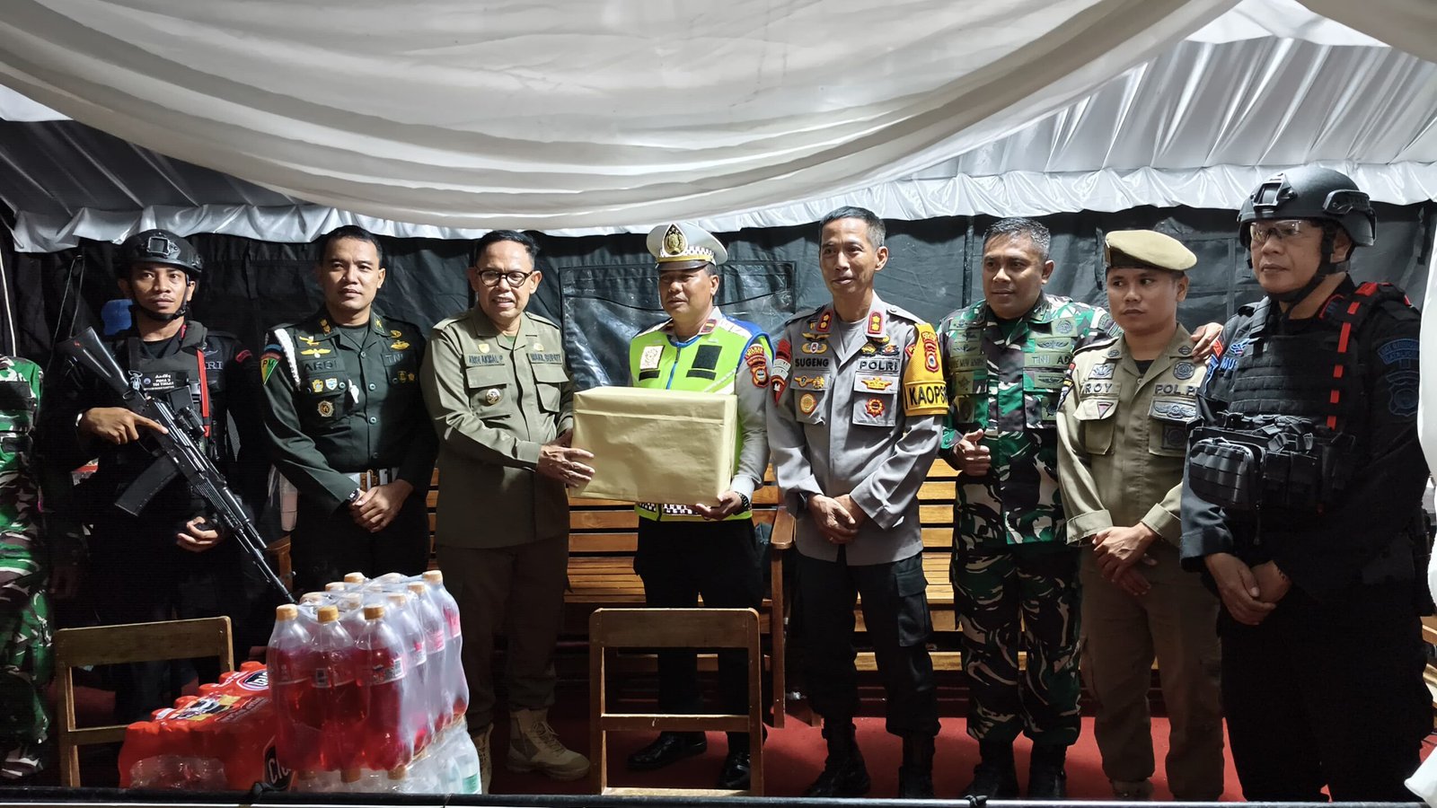 Sebagai bentuk perhatian dan dukungan moril, Wakil Bupati Bone bersama Forkopimda turut membagikan paket sembako kepada para petugas yang berjaga di pos pengamanan.